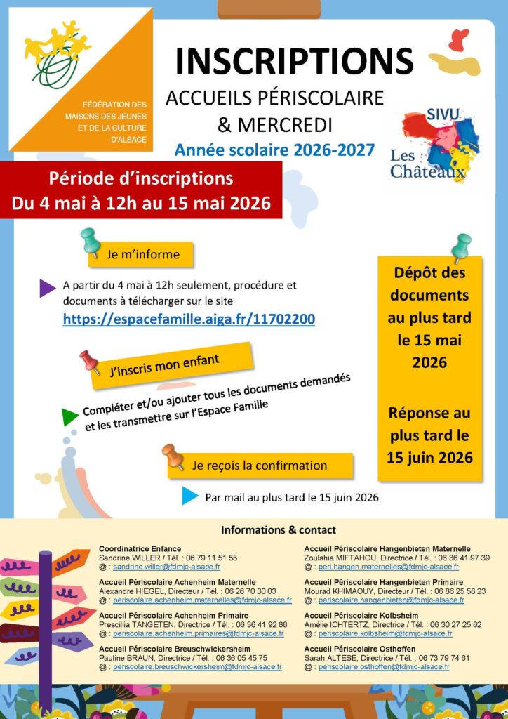 • Ouverture des inscriptions au Périscolaire (Année scolaire 2026–2027) 08/04/2026